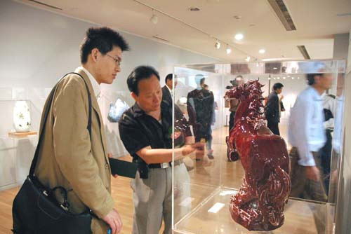 中国艺术品网2006年5月10日现场报道:景德镇工艺美术大师、中国陶瓷艺术大师作品展今在上海美术馆隆重开幕。现场展出了21位艺术大师的陶瓷艺术精品。本次展览是上海艺术博览会十周年系列活动的序幕,我们在现场首先采访的是中国工艺美术大师、国家级有突出贡献的专家唐自强老师,就当今陶瓷艺术的现状作了采访: