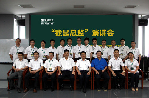 经过精心的准备,17位来自蒙娜丽莎瓷砖事业部、企划部的营销精英,先后走上讲台,针对 “总监”这一特定的职位发表自己的施政演说,他们或结合多年的实战经验,制定系统的“作战计划”,或分析行业的发展趋势,提出创新的营销策略,或针对公司的实际情况,提出详细的营销方案,或总结。每一位演讲者都能从“总监”这一特殊的职位出发,紧紧围绕团队、渠道、店面、活动、管理、服务、市场、策略等内容,上下统筹,内外兼顾,全面、系统、专业地阐述自己在这一位岗位上的职业构想拓展计划。他们或高昂激越的演说、或声情并茂的阐述、或脱稿流利的表达,获得了集团领导和在座同事的阵阵掌声。