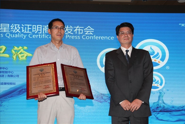 据悉,“卫浴质量星级证明商标”是经国家工商总局商标局核准注册,由标志管理单位正式对外发布启用,是我国首个水嘴、座便器产品品质、卫生安全性能、节水效率等级认证商标。该证明商标从产品质量、卫生性能及放射性、用水效率等级三个重要方面对卫浴产品进行星级评价,尤其在用水效率方面,严格参照强制性标准GB25501、GB25502执行。同时,该证明商标的推出实施将促进我国卫浴行业的规范有序发展,推广普及高效节水、安全卫生的卫浴产品,指导广大消费者对节水卫浴、优质卫浴产品的甄别与选用。