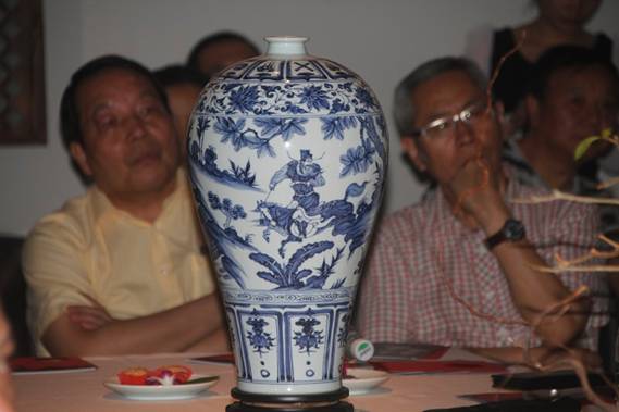 开幕现场皇窑品牌创始人黄青将元青花三绝中的其中一绝:南京博物馆的镇馆之宝“萧何月下追韩信”赠予瑞瓷做永久收藏。这件作品更是有天下第一元青花的说法,作品画面描绘的是萧何策马扬鞭追赶英才韩信的故事。这件作品由国家非遗传承人,古陶瓷鉴定专家黄云鹏监制,黄云鹏也是仿制“萧何”的第一人。