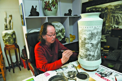 大师在唐山陶瓷文化创意中心进行创作。